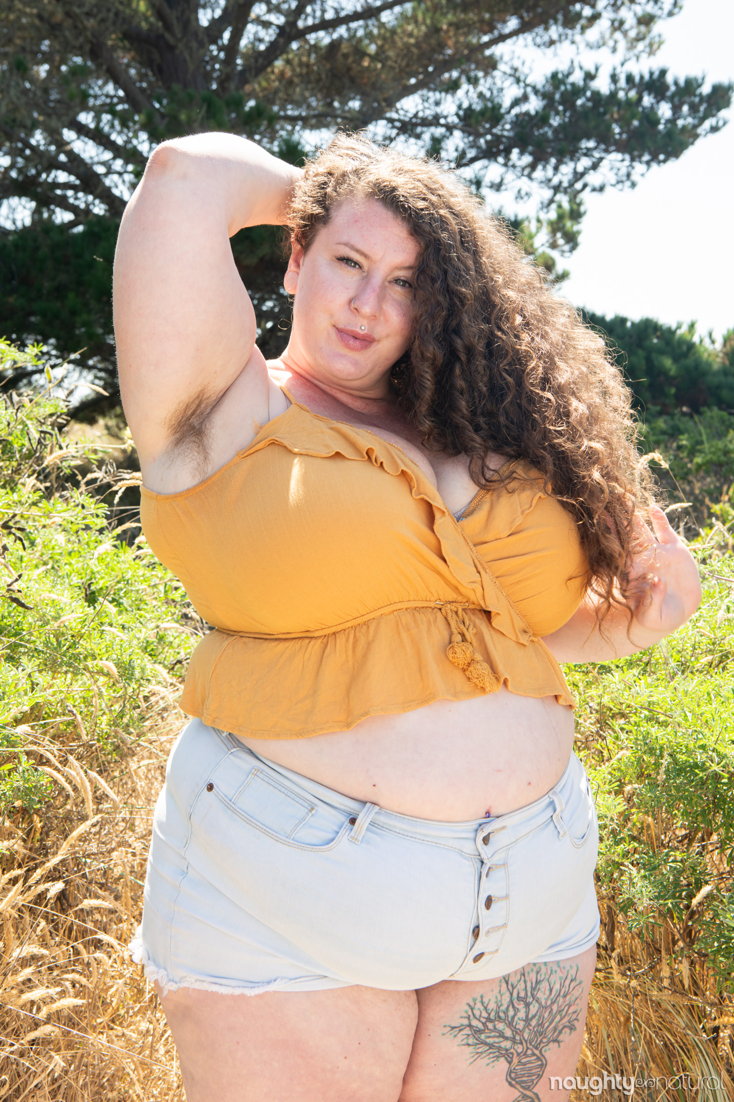 Delilah's looking stunning in her yellow crop top and tight denim shorts... but she looks even better when she takes it all off! This curvy beauty is always ready to tease you with her hairy pits and soft ginger bush! Join now to see all 234 photos in this scene!