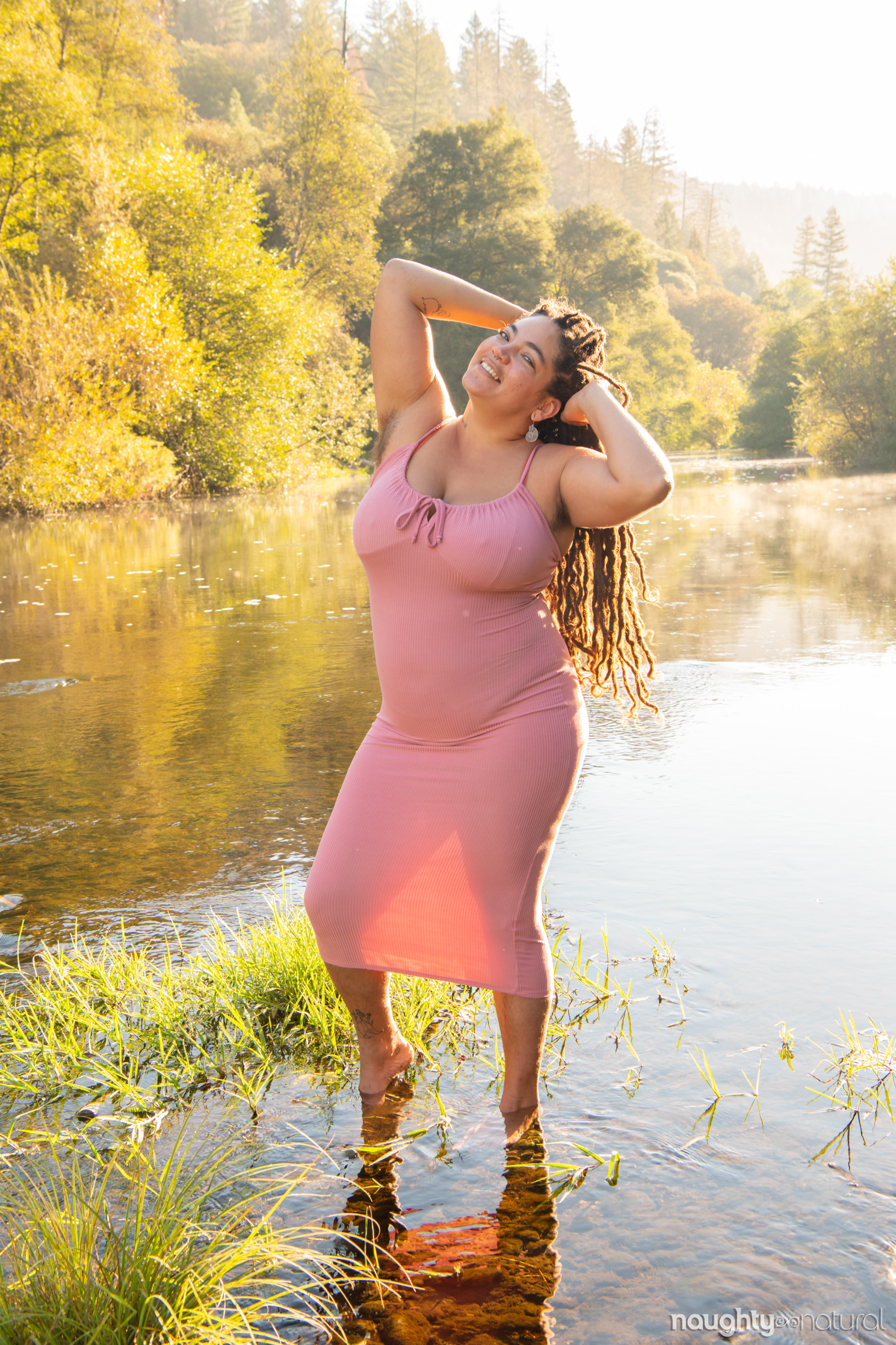 Fiesty shows off her strong, curvy, hairy body in nature. She's a true river goddess! Join now to see all 248 photos in this scene!