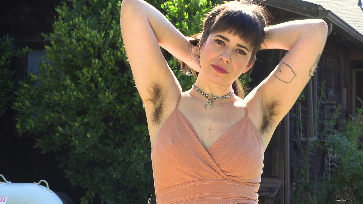 Freya is having a wonderful time in my garden, eating tomatoes and soaking in the sunshine. The warmth gets her all turned on as she shows off her hairy armpits and pussy for you.