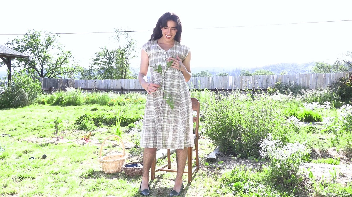 Olive's enjoying a beautiful day in the garden. Feeling the soft caress of the foliage against her hairy ass cheeks. She can't help but grab a seat and pleasure her big juicy clit.