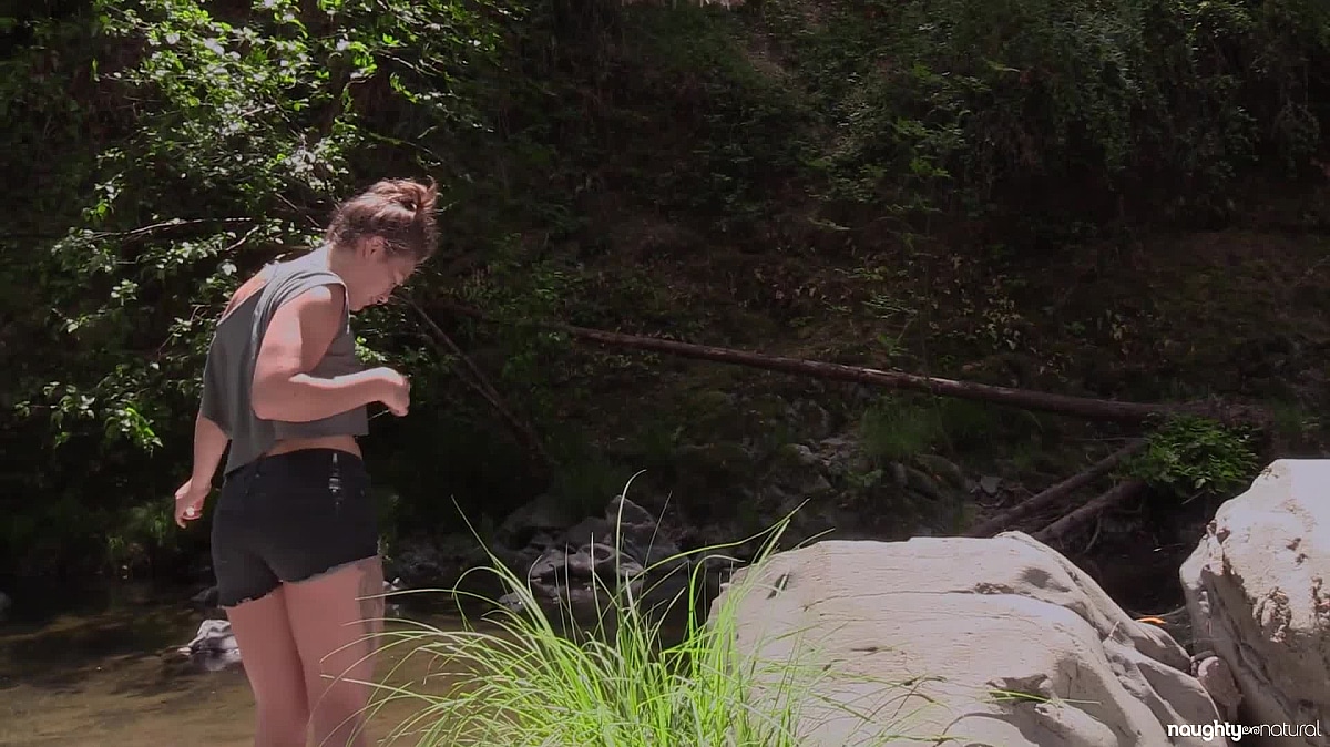 Rion plays in the river, admire her muscular and lean body flexing and showing off her body hair.