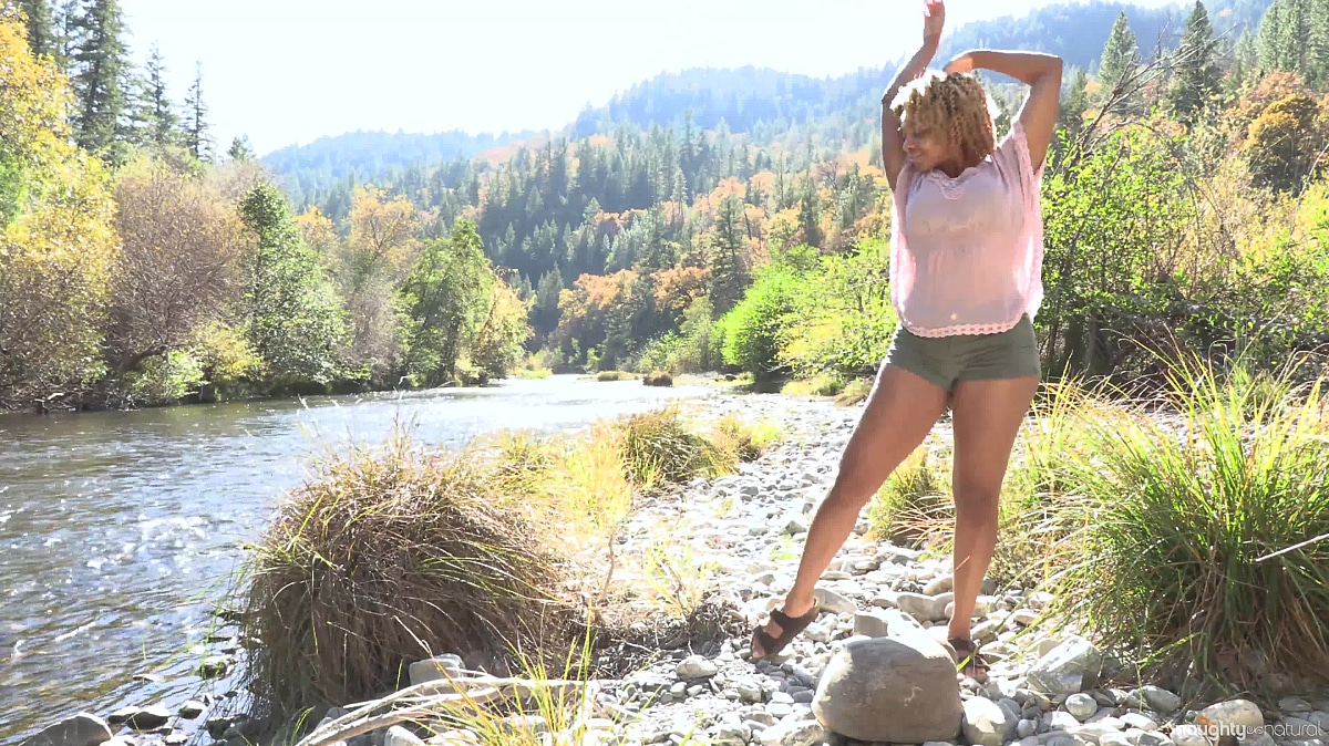 Oya has fun connecting with nature at the river as she slowly takes her clothes off and makes sensual eye contact with the camera.