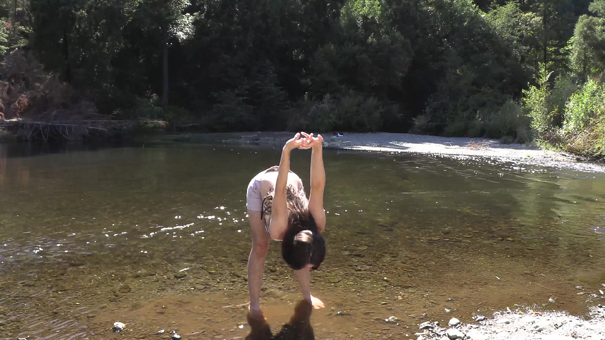 Kisa shows off her beautiful, hirsute body and makes herself cum at the river.