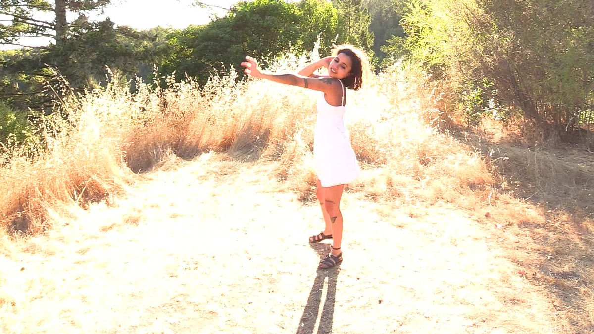 Frankie is lithe and beautiful, moving her all natural body in the golden field, showing off her thick dark body hair before masturbating.