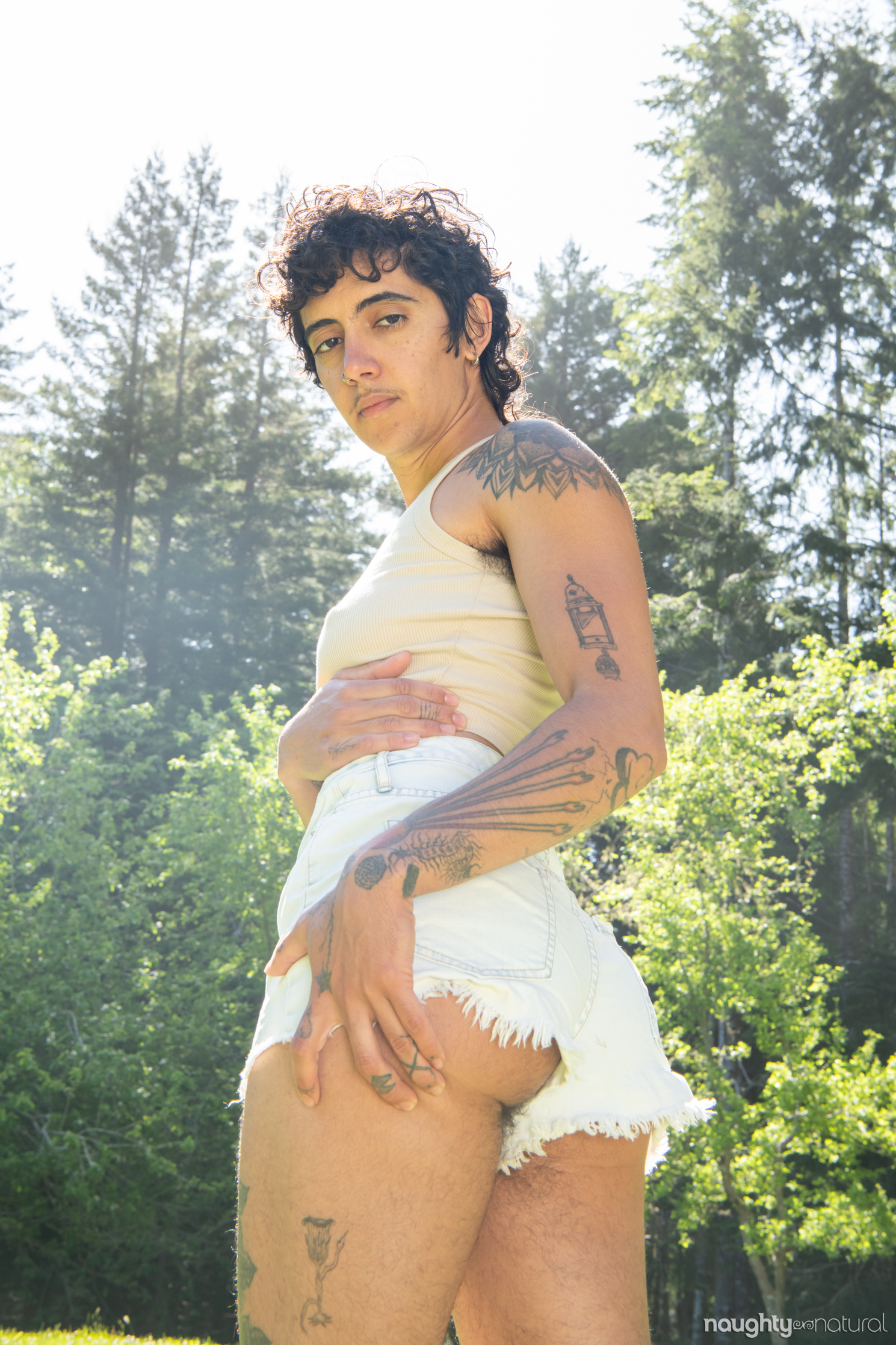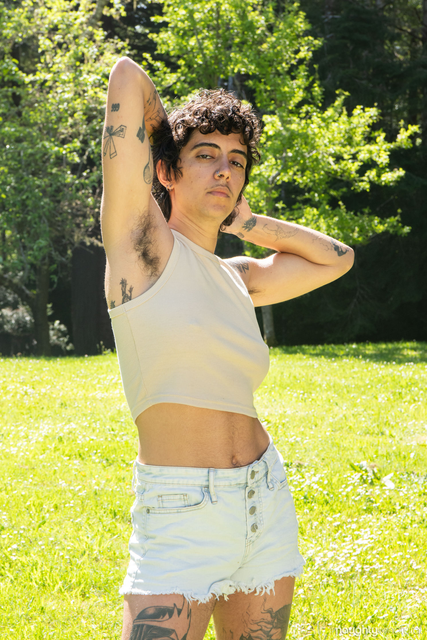 The afternoon sun highlights Zakis' body hairy perfectly-- showing off their jet-black bush, deliciously fuzzy armpits, happy trail, mustache, and of course, their amazingly hairy ass! Join now to see all 185 photos in this scene!