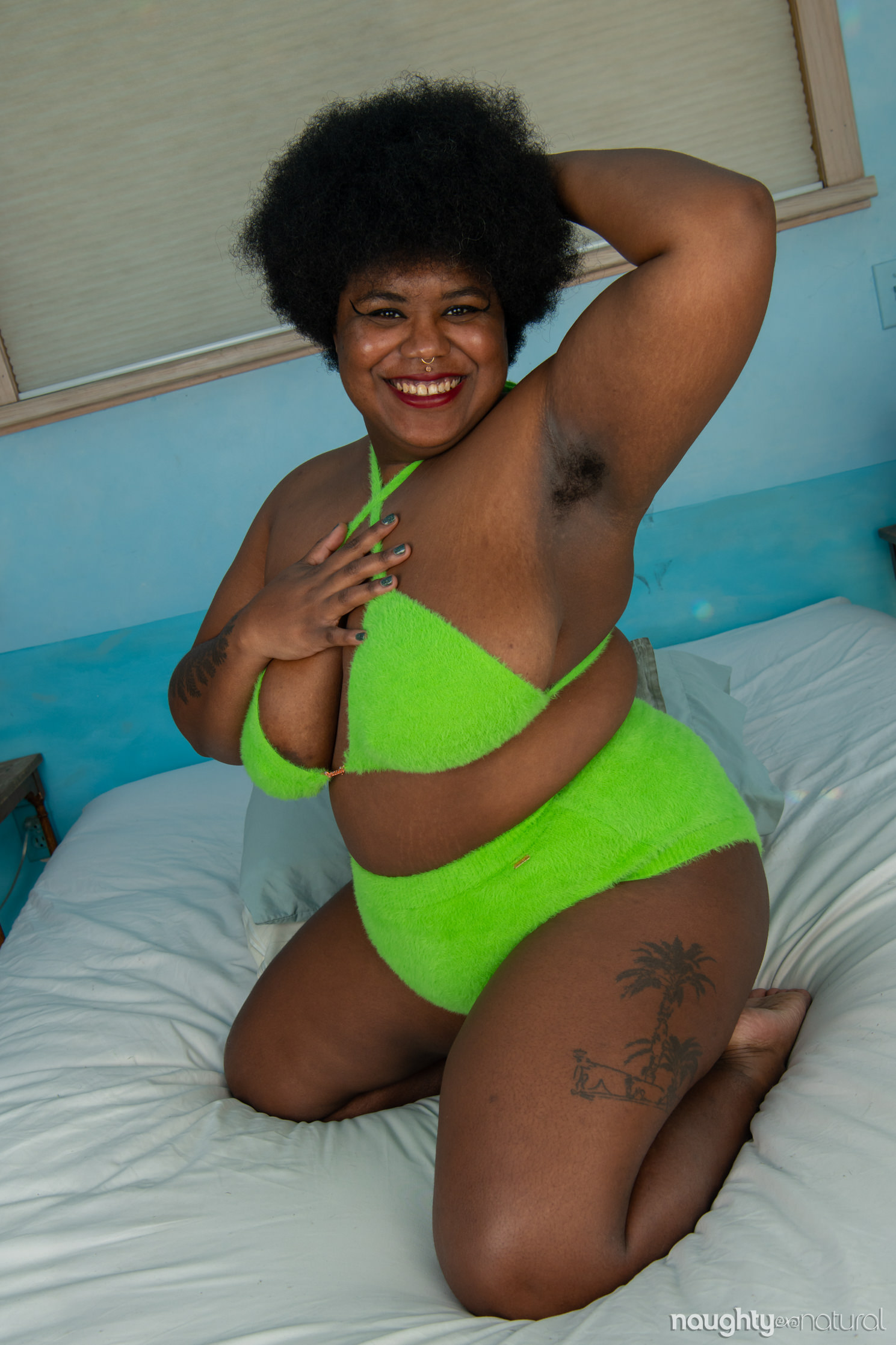 Zuri's ready to rock your world in her sexy, flirty lime green bra and panty set. She lays back on the bed and spreads her hairy pussy and ass wide open for you to enjoy. Join now to see all 157 photos in this scene!